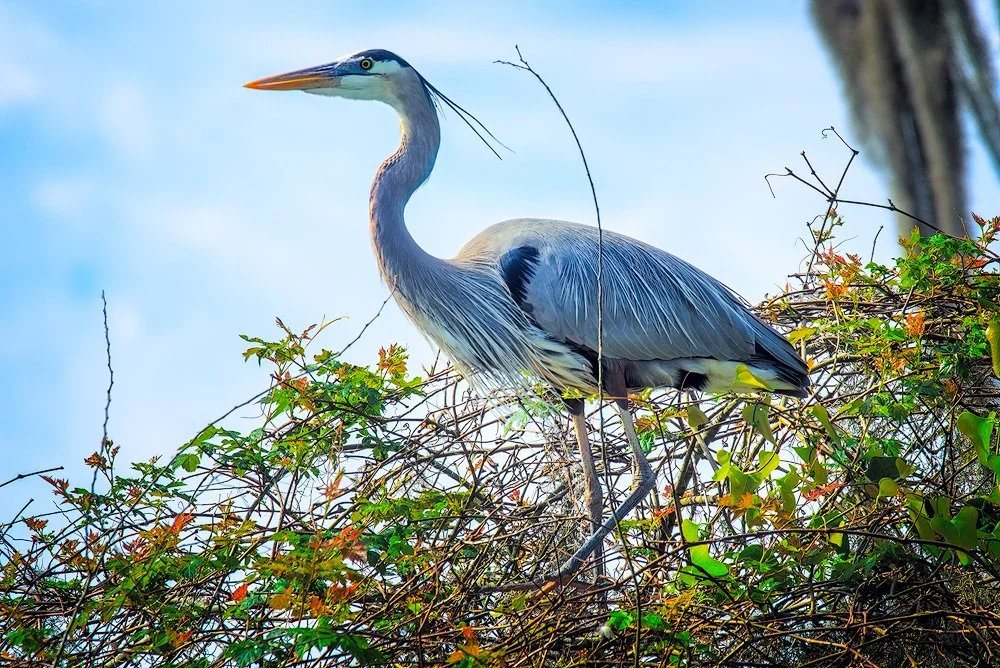 This image was taken at the Circle B-Bar Preserve in Lakeland, Florida in March of 2020. This Great Blue Herons was perched atop this tangle of tree top vines just watching the world pass by. I wasn't sure if it was looking for nesting materials or trying to decide if that might make a good nesting site.
