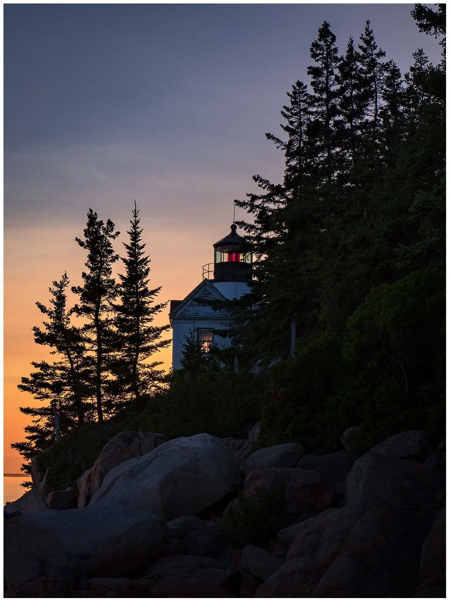 The Bass Harbor Head Light Station is located in Tremont, Maine, marking the entrance to Bass Harbor and Blue Hill Bay on the southwest corner of Mount Desert Island. The step ledges make it somewhat difficult to photograph from any angle other than looking west, as in this image. This iconic lighthouse represented Maine in the America the Beautiful quarter in series, making it's debut in 2012, the NPS centennial postage stamp in 2016, and was listed in the National Register of Historic Places in 1988.