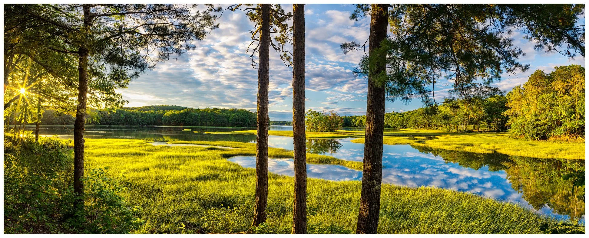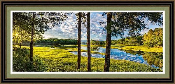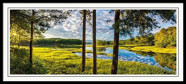 The Boothbay, Maine region is full of small villages, shops, scenic vistas. This image was taken on the southwest side of the peninsula, about five miles inland from where the Back River's waters empty into the Atlantic Ocean. We were fortunate to have spent a week camping at this very site. During the summer month the area is teaming with waterfowl and raptors, among them, the Bald Eagle. It was high tide when I took this shot. The beauty changes considerably at low tide when these picturesque waterways drain to just a small stream, exposing the mud flats that the egrets, herons and other shore birds forage in for their meals. It is not unusual to see some territorial battles between herons and egrets at low tide. And then, before you know it, the waters return and many of the birds return to their roosts to await the next low tide.