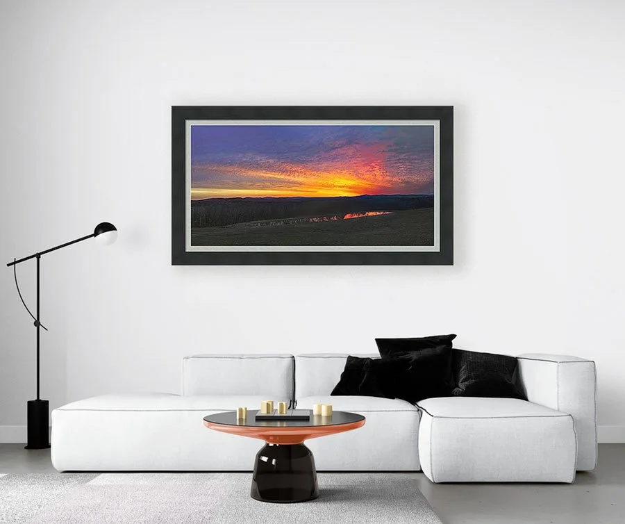 The sleek, black 0.88” wide wood frame gives a professional gallery appearance to the image.